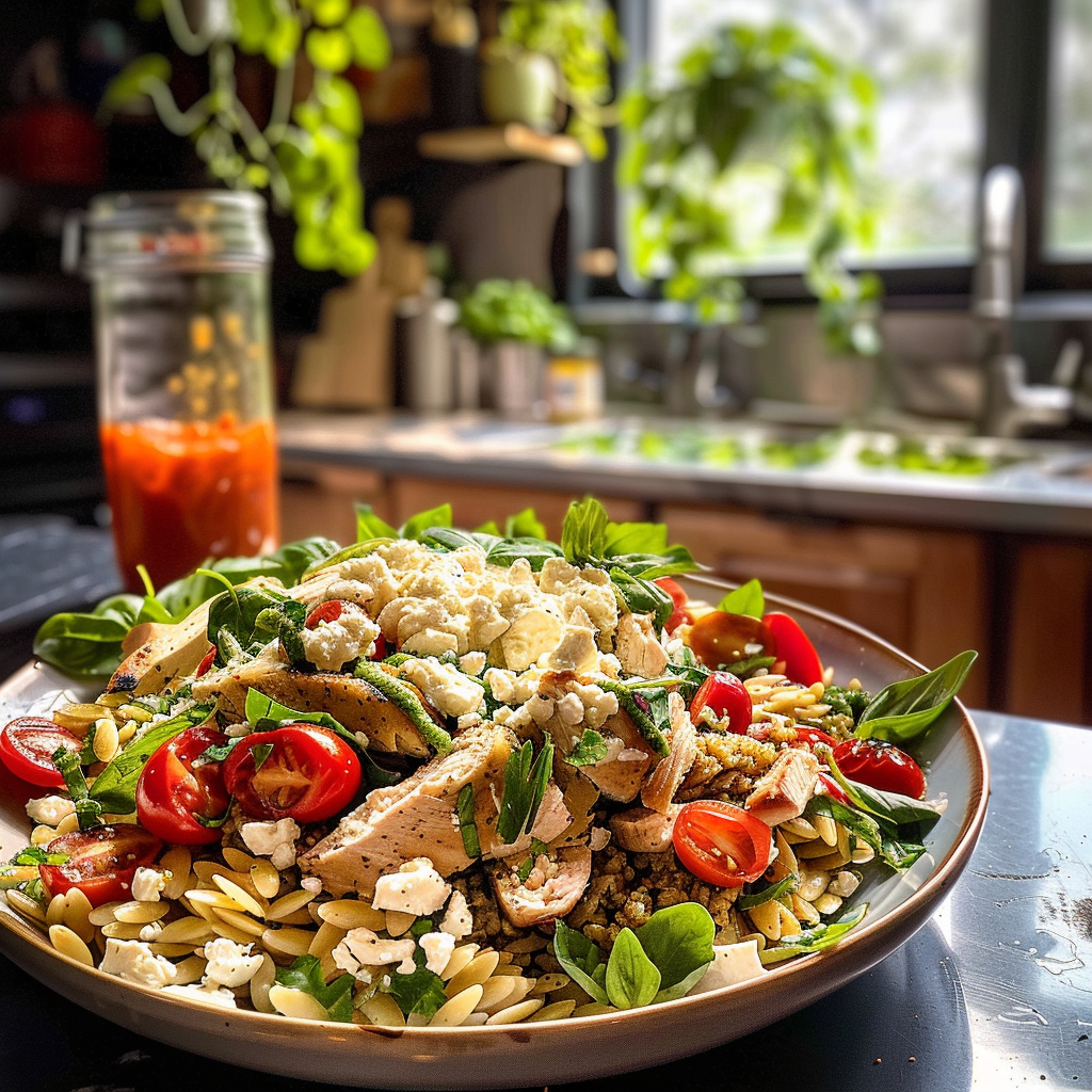 Irresistible Greek Tahini Chicken and Feta Orzo Bowls