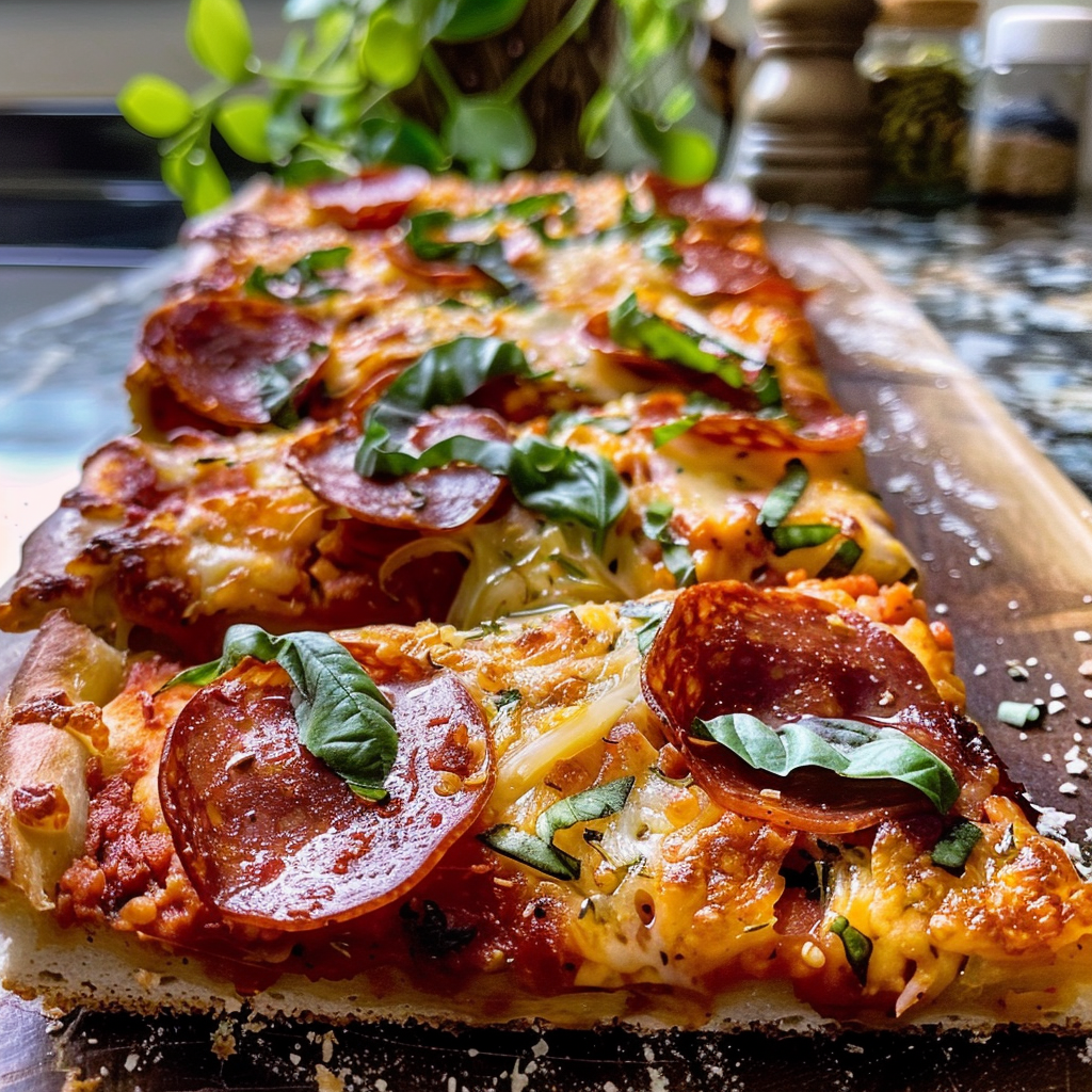 Irresistible Detroit Style Tomato Herb Pepperoni Pizza Recipe