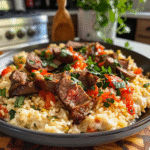 Creamy Queso Rice with Juicy Steak Strips is the ultimate comfort food that combines rich flavors and creamy textures in every bite. This dish features tender steak strips seared to perfection, nestled atop fluffy rice, all generously coated in a luscious queso sauce made with sharp cheddar and heavy cream. Perfect for cozy dinners or lively gatherings, this recipe is sure to become a family favorite as it brings warmth and joy to your table.