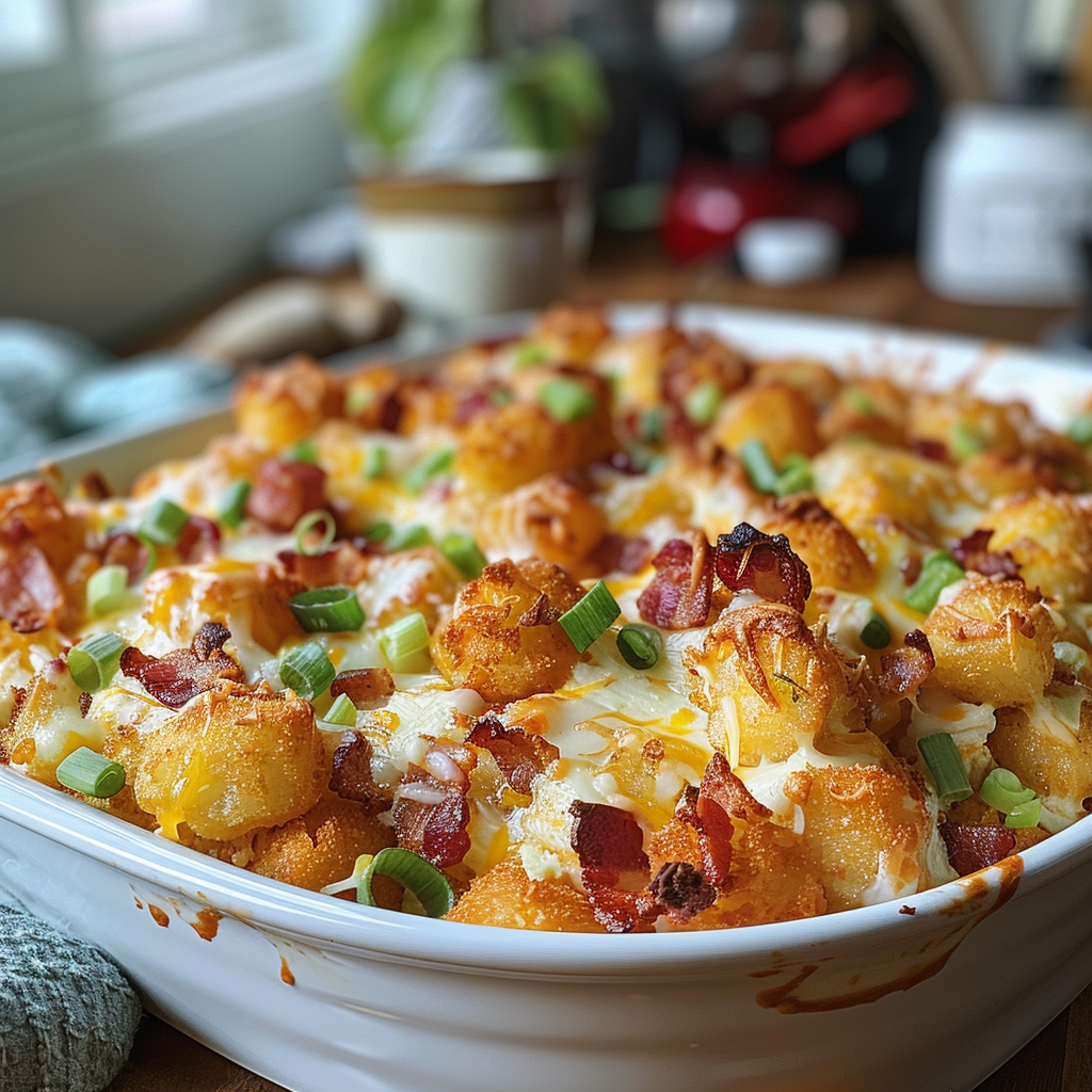- Visually appealing with its golden tater tots, this dish is as comforting as it is stunning