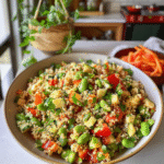 Now, let me take you back to that sunny afternoon when I first served this salad at a family picnic. My cousin, who usually thinks salads are just rabbit food, took one bite and exclaimed, “This is like a party in my mouth!” It was then I knew we had found our new family favorite. Try this flavorful egg scramble Perfect for summer barbecues, meal prep, or just because it’s Tuesday—this salad has become an essential part of our culinary repertoire. Get ready to experience the flavor explosion that is the Quinoa Edamame Salad.